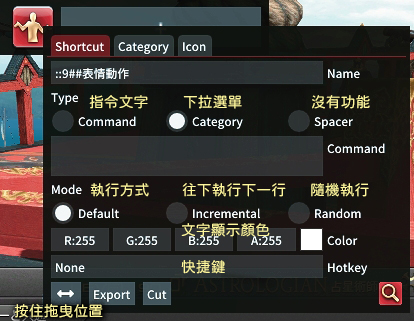 不只可以放表情,可以放文字、切換職業、喊話巨集等各種發揮創意玩法(?)